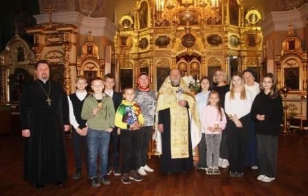 Последним было посещение храма во Имя Святой Троицы. Его настоятель, протоиерей Николай Шестопалов, тепло приветствовал маленьких гостей, рассказал историю строительства церкви в 1908 – 1914 годах и ее разрушения в начале 50-х годов ХХ века. С удивительной теплотой, духовной радостью говорил священник о поистине чудесном возрождении храма, который сейчас является не только местом молитвы многочисленных прихожан, но и одним из красивейших зданий Новозыбкова. Отец Николай пожелал детям быть послушными, внимательными и трудолюбивыми, пригласил их приходить на богослужения вместе с родителями