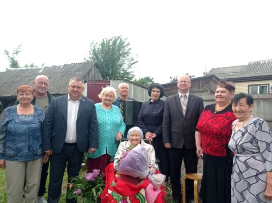 Глава Новозыбковского городского округа Александр Щипакин поблагодарил именинницу за мужество и стойкость, проявленные в непростые военные годы и многолетний труд: «Вы — многим пример для подражания. Пример любви и сострадания к ближнему. История вашей жизни достойна быть записанной в книге как напоминание потомкам о подвиге великого народа-победителя в лице простой русской женщины».