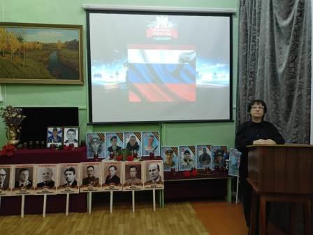 9 декабря – День Героев Отечества. В эту памятную дату на базе Новозыбковского филиала ФГБОУ ВО «Брянский государственный аграрный университет» для студентов первого курса трёх отделений – механизации, электрификации и логистики сельскохозяйственного производства – сотрудником читального зала был организован урок мужества «Героя звание бесценно» в честь тех, кто удостоен самой почетной государственной награды – звания Героя Российской Федерации. Студентам был предложен небольшой исторический экскурс «9 декабря – День Героев Отечества», в котором сообщалось о роли образа Георгия Победоносца, как покровителя воинства. "". И это не случайно. Ведь неприкрыто близка параллель: Георгий Великомученик Победоносец и Герои Отечества нашего времени, о ежедневной службе которых и было рассказано библиотекарем в течение мероприятия. Примеры сопровождались слайд-презентацией и видеосюжетами.