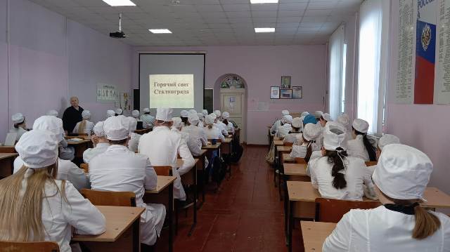 2 февраля библиотекарь Центральной библиотеки имени князя Н.Д.Долгорукова Афонина Н.М. во время беседы с презентацией «Горячий снег Сталинграда», проведенной ею в Новозыбковском медицинском колледже со студентами первого курса этого учебного заведения, рассказала об основных этапах Сталинградской битвы, которая завершилась 2 февраля 1943 года – 81 год назад. Наталья Михайловна рассказала не только об основных этапах битвы, которая продолжалась 200 дней и ночей, но и об отдельных людях, участвовавших в ней и оставшихся в человеческой памяти и советской истории. "".Особое внимание библиотекарь уделила командующему 62-й Армией Василию Ивановичу Чуйкову, благодаря тактике которого (немцы назвали ее «крысиной» войной) фашисты не смогли опрокинуть наши войска в Волгу и в, конечном итоге, были разбиты и пленены. Так же библиотекарь рассказала о защите подступов к тракторному заводу девушками-зенитчицами, вчерашними школьницами, о легендарном доме сержанта Павлова, штурмовой отряд которого уничтожал фашистов, не давал им пройти к Волге два месяца, о подвигах медсестры Гули Королевой и бронебойщика Михаила Паникахи, о легендарном снайпере Василии Зайцеве, только за период Сталинградской битвы уничтожившего 240 немецких солдат и офицеров…