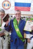 Первый поединок наш спортсмен выиграл удержанием, второй-болевым приёмом на руку. В результате – Игорь Анисимов стал чемпионом турнира и был награждён медалью, дипломом и чемпионской лентой. |