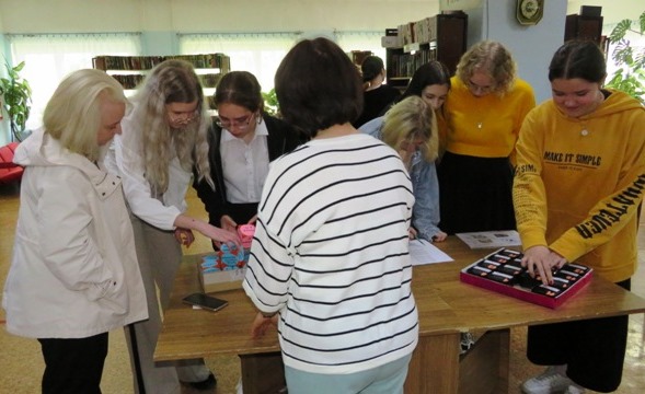 Литературно-исторический квест «По страницам русских классиков» 23 мая прошел в центральной библиотеке имени князя Н.Д. Долгорукова. Его участниками стали студенты БГУ, НМК, НСХТ и лицеисты НППК. На станции «Школьные афоризмы» (библиотекарь Афонина Н.М.) ребята показали знание афоризмов из произведений русских поэтов и писателей, на станции «Иллюзион» (библиотекарь Куценкова И.М.) по крошечным фрагментам экранизированной классики угадывали не только автора и название литературного источника, но и занятых в показанном отрывке героев. «Изографы» (библиограф Резниченко С.) рисовали и раскрашивали стилизованные буквицы, а затем собирали их в слова."". На станции «Игры разума» (библиотекарь Коржукова Г.А.) ребята «играли в кубики» – собирали из них картинки с названиями произведений одного автора с ним во главе, играли в «пятнашку» (передвигая в замкнутом пространстве кубики, собирали пословицы), искали ошибки в «трудных» словах.
