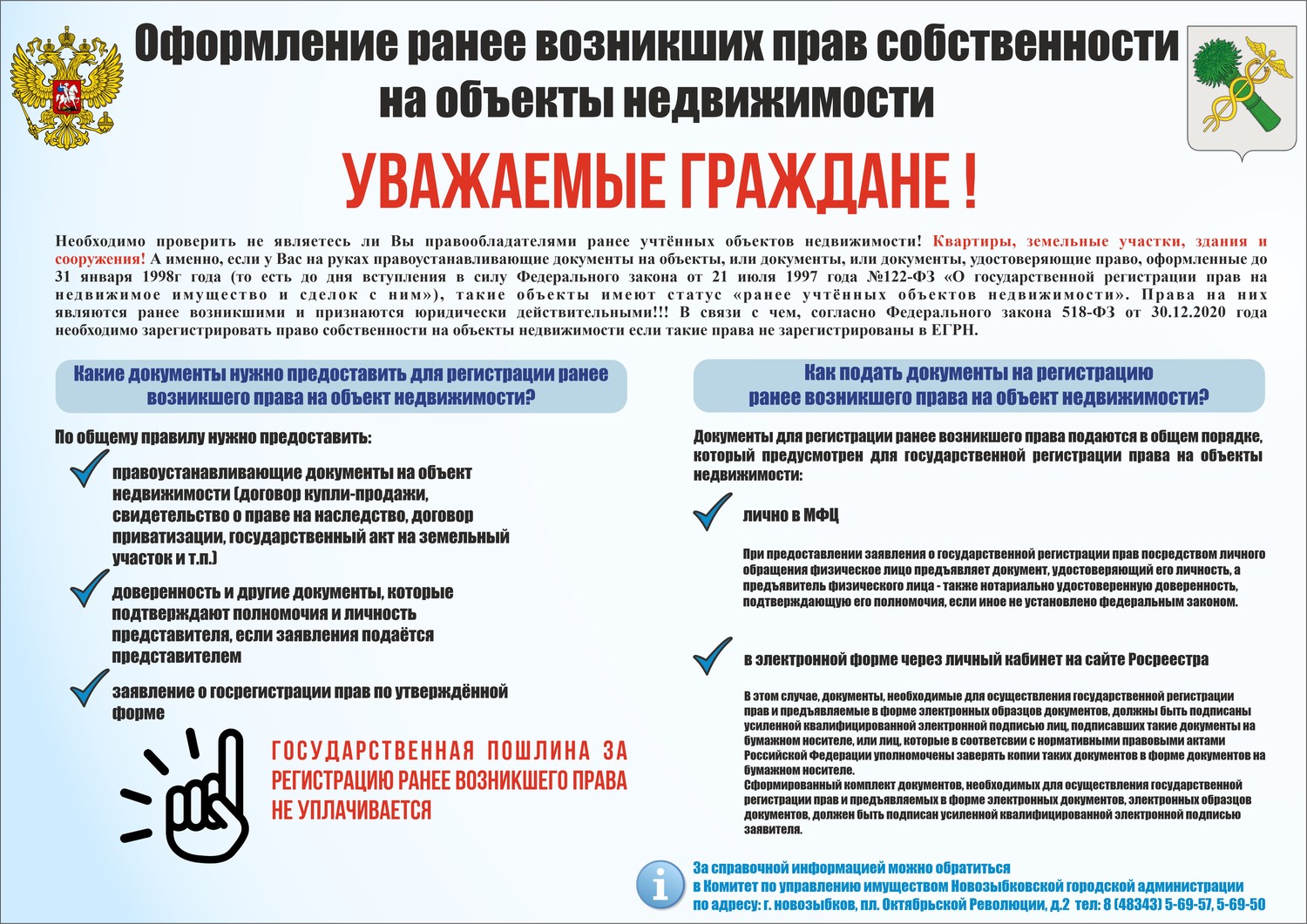 Уважаемые граждане! Необходимо зарегистрировать ранее возникшие права на недвижимость. Комитет по управлению имуществом даёт разъяснения: