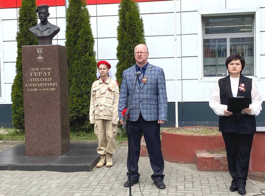 От лица ныне здравствующих ветеранов Филиппова Константина Александровича, 05.08.1989 года рождения, добровольца, награждённого Орденом Мужества за уничтожение вражеского танка, Анищенко Дениса Александровича, 29.07.2002 г.р., выпускника гимназии, контрактника, бывшего командира боевой машины «Град», который после тяжёлой военной травмы занимается патриотическим воспитанием, возглавляет Молодёжный казачий клуб «Атаман», – и от себя лично выступил Белоус Андрей Сергеевич, 12.02.1993 г.р., гвардии прапорщик, командир взвода. Он – выпускник школы № 9 г. Новозыбкова, опытный военный, первый контракт заключил во время службы в армии, в мае 2013 г., сначала боролся с терроризмом в Чеченской народной республике, потом выполнял задачи на территории ЛНР И ДНР, был тяжело ранен. За героизм награждён Орденом Мужества. В настоящее время трудится директором МБОУ «Сновская СОШ».