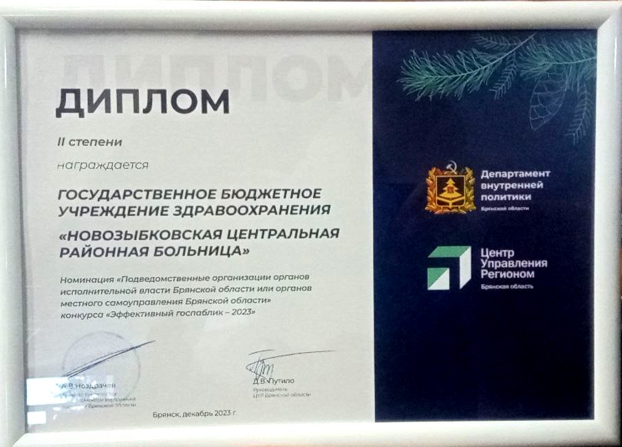 Новозыбковский городской округ прозвучал дважды на форуме. Во-первых, вошёл в число лучших по созданию госпабликов – 100 % подведомственных организаций оформили официальные страницы в ВК в соответствии с современными требованиями, во-вторых, подведомственная организация - Новозыбковская ЦРБ - награждена диплом 2 степени в номинации «Подведомственная организация органов исполнительной власти Брянской области» конкурса «Эффективный госпаблик-2023» - администратор Ирина Чувина.