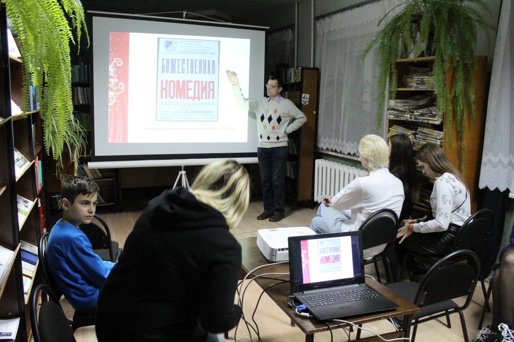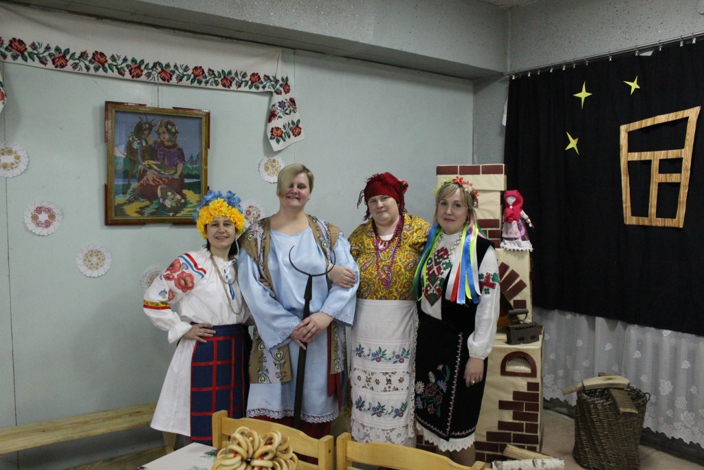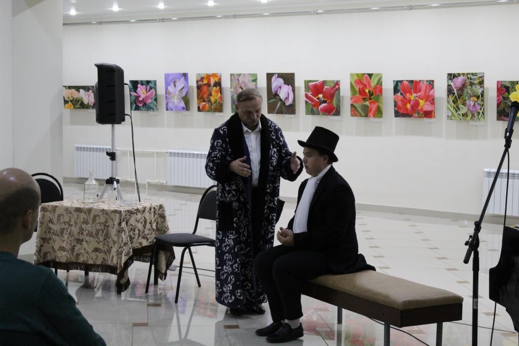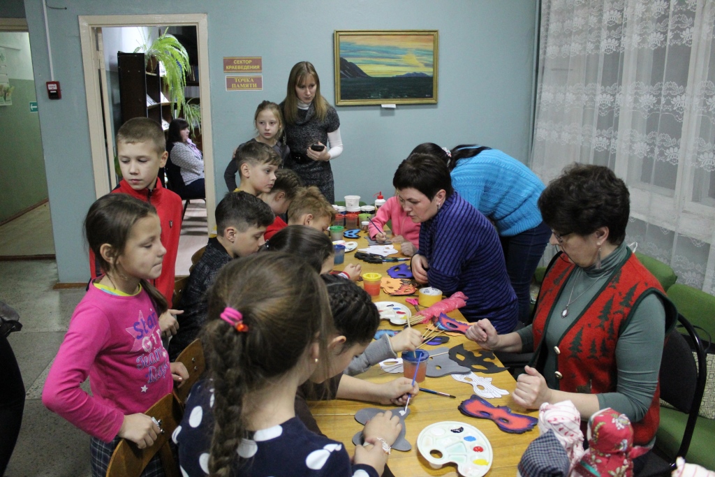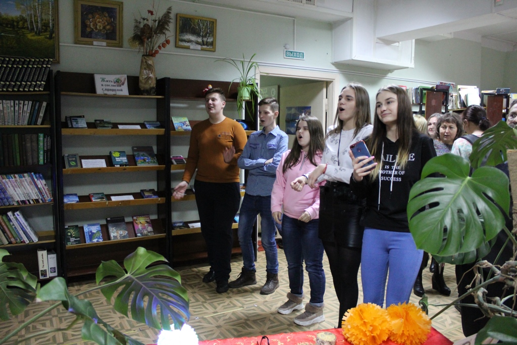 Традиционно в вечере приняли участие мастерицы и умельцы нашего города. Они представили в читальном зале на показ публике изделия из фоамирана, кожи, камня, кукол в народных костюмах, деревянные магниты, плетеные из газетных трубочек вазы и блюда. Здесь же расположилось и библиокафе «В шинке у Солохи», где девушки в красочных костюмах гоголевских вечеров близ Диканьки радушно встречали гостей чаем и плюшками. В это же время на интерактивной доске весело проходила театральная викторина, собравшая людей всех поколений. Это стало возможным потому, что вопросы были подобраны на любой возраст: от детей-малышей до умудренных старцев. Приятной неожиданностью для совсем маленьких гостей стала художница-аквагример, расположившаяся здесь же.