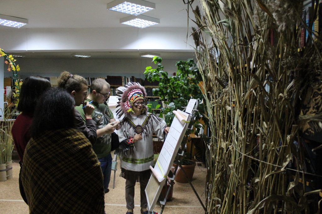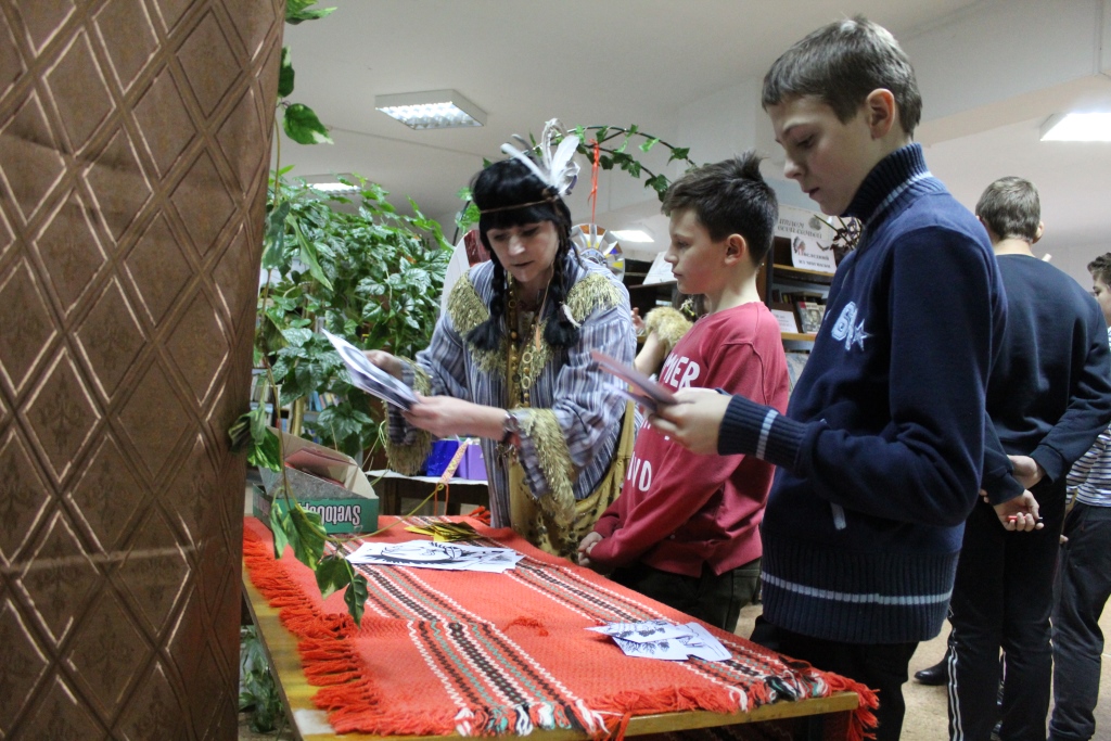 На Абонементе развернулся «Этномир Фенимора Купера». Посетителям было предложено окунуться в атмосферу индейского поселения, побывать внутри вигвама, сфотографироваться с Белым Пером, Красной Лисой или Крадущимся Лисом. Показать свою эрудицию можно было в викторине «По следам индейских племен», посвященной произведениям Ф.Купера. Творческий подход требовался для того, чтобы сложить красочные этнопазлы. Все с удовольствием участвовали и в игре «Буквенный ребус». Причем участвовали люди разных поколений, стихийно создавая свои импровизированные команды и всерьез стараясь обыграть соперников.