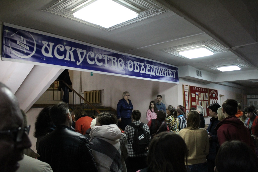 В холле второго этажа расположилась Детская художественная школа с небольшой, но от этого не менее интересной, художественной выставкой работ преподавателей школы. Мастер-класс по росписи театральных масок собрал вокруг педагогов-профессионалов много ребятишек, а мастер-класс по оригами от Марии Кравченко привлек вместе с детьми и родителей.