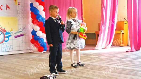Самым трогательным моментом праздника стал долгожданный традиционный первый звонок, который дали первоклассник и будущая выпускница."
