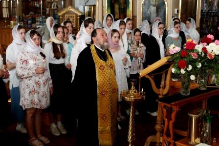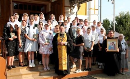 Настоятель храма протоиерей Владимир Похожай напутствовал девушек пожеланием доброй жизни и счастливого брака, а потом отслужил краткий молебен покровителям честного супружества благоверным князю Петру и княгине Февронии. По окончанию молитвы протоиерей Владимир благословил всех Святым Крестом и окропил Святой водой.