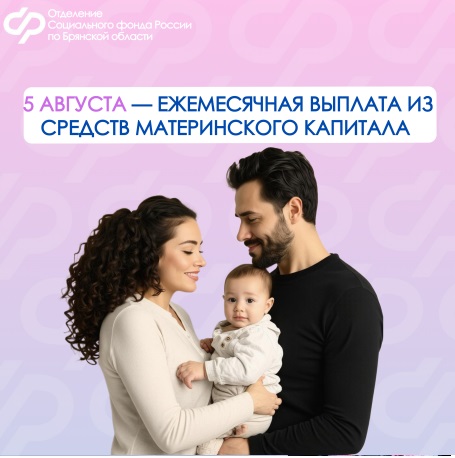 5 августа будет перечислена ежемесячная выплата из средств материнского капитала на детей до 3 лет.
