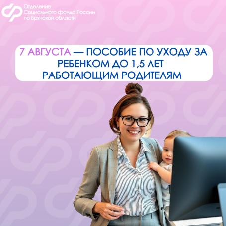 7 августа Отделение Социального фонда России по Брянской области перечислит в банки пособие по уходу за ребенком до 1,5 лет работающим родителям.