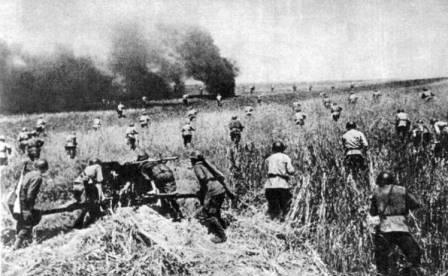 В мае 1939 г. японские войска вторглись на территорию союзной СССР Монгольской Народной Республики в районе реки Халхин-Гол. Это вторжение явилось составной частью японских планов захвата советского Дальнего Востока и Сибири, Китая и владений западных стран в районе Тихого океана. Императорская ставка готовила два варианта ведения войны: северный - против СССР и южный - против США, Великобритании и их союзников. Несмотря на предупреждение советского правительства, что СССР будет защищать МНР как свою собственную территорию, японские войска, имея трехкратное превосходство в силах (около 40 тыс. человек, 130 танков, более 200 самолетов) 2 июля форсировали р. Халхин-Гол и вторглись на территорию МНР, но после кровопролитных боев вынуждены были временно отступить. Наступление уже силами целой армии японцы готовились возобновить 24 августа, но советские войска упредили противника и сами 20 августа перешли в наступление силами созданной к тому времени 1-й армейской группы под командованием комкора Г. Жукова.