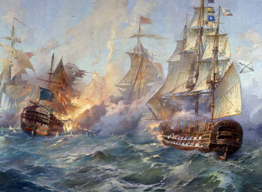 В ходе двухдневного морского сражения у о. Тендра в 1790 г. 10 линейных кораблей, 6 фрегатов, 20 вспомогательных судов (всего 826 орудий) контр-адмирала Ф.Ф. Ушакова атаковали стоящий на якорях турецкий флот капудан-паши Хусейна (14 линейных кораблей, 8 фрегатов и 23 мелких судна, всего 1400 орудий). После 1,5-часового сражения турки вышли из боя. На следующий день русская эскадра преследовала турок, бегущих к Босфору. Захвачен в плен линейный корабль «Мелеки-Бохри», несколько кораблей уничтожено. Обеспечен переход русской гребной флотилии в Дунай и ее участие во взятии совместно с войсками А.В. Суворова ряда крепостей, в том числе Измаила.