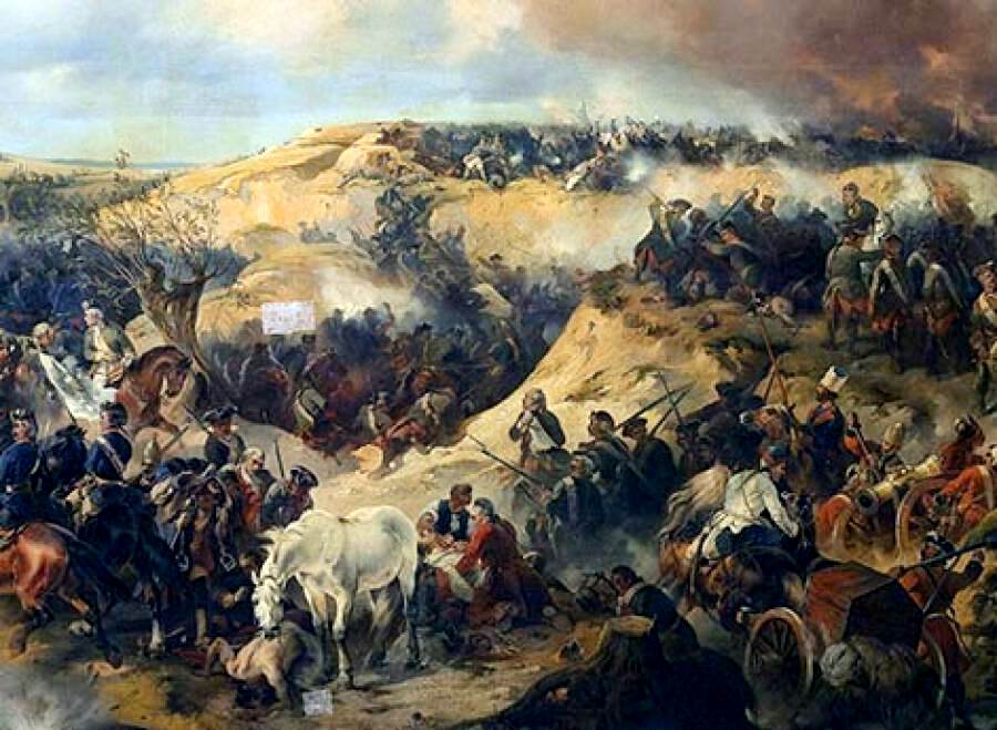 Фридрих II с армией в 48 тысяч человек, идя навстречу противнику с юга, переправился с левого берега р. Одер на правый и занял позицию восточнее селения Кунерсдорф, около которого находилась основная группировка русско-австрийских войск во главе с главнокомандующим Салтыковым. Готовясь к встрече с противником, союзные войска расположились на трех господствующих высотах, отделенных друг от друга оврагами и болотистой низиной…