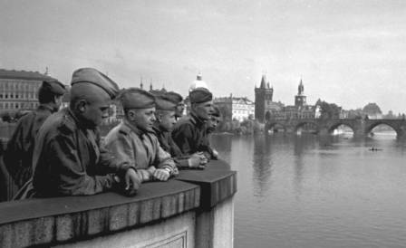 На заключительном этапе войны как У. Черчилль, так и командующий британскими войсками в Европе Б. Монтгомери всерьез рассматривали вариант захвата западными союзниками Берлина, Вены и Праги раньше советских армий. Сопротивление немцев на западном фронте фактически рухнуло, тогда как к началу мая в Чехословакии и Северной Австрии советским войскам продолжали оказывать сопротивление группа армий «Центр» и часть сил группы армий «Австрия» — свыше 900 тыс. человек, около 10 тыс. орудий и минометов, свыше 2200 танков и штурмовых орудий, около 1000 самолетов."