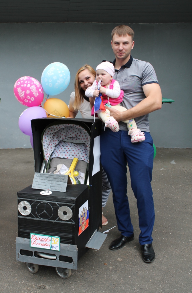 Семья Жугаровой Маргариты украсила свою коляску воздушными шарами, наклейками с символикой нашей великой страны, за что были признаны лучшими в номинации «Маленький патриот».
