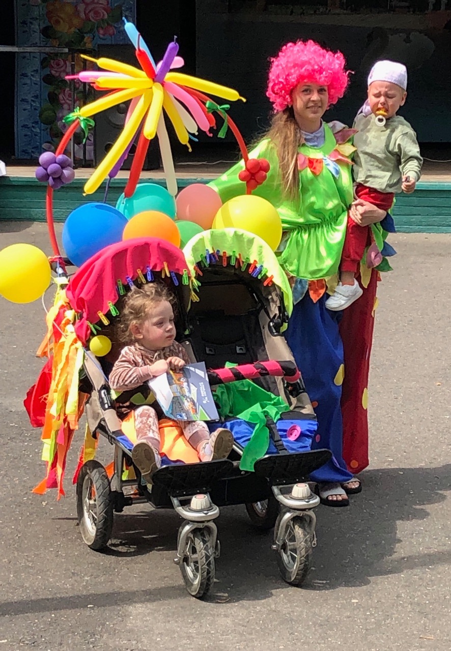 Внимание всех собравшихся привлекал яркий кортеж для суперэнергичных пассажиров-двойняшек Арины и Дани Цепковых. Мама Оксана поделилась, что веселая жизнь семейства вдохновила ее на создание коляски для клоунов, которая победила в номинации «Веселая семейка».