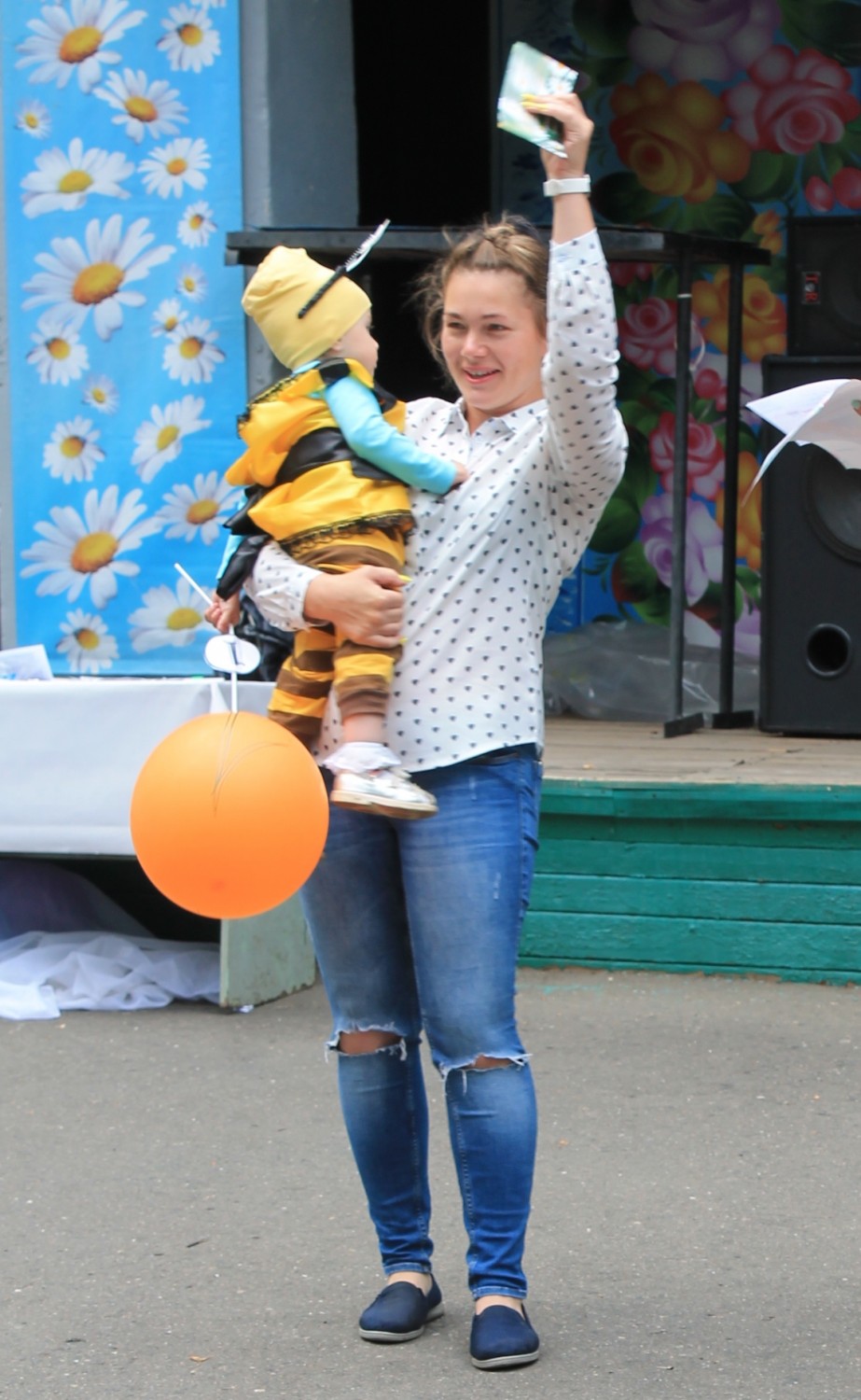 Всех обаяла маленькая, но очень самостоятельная пчелка Келемен Алена с коляской - медовым бочонком. Полуторагодовалая участница одержала победу в номинации «Коляска маленькой мамы».