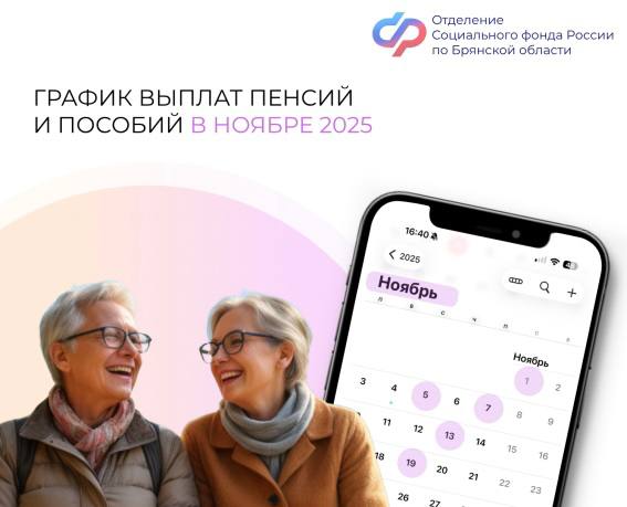 Отделение Социального фонда России по Брянской области доводит до сведения граждан график зачисления «детских» пособий и пенсий в ноябре 2025 года.