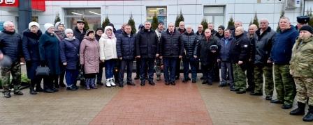 Сбор-перекличку провёл председатель общественной организации Г.А. Бейгул," обозначив план мероприятий на сегодняшний день, среди которых возложение цветов у памятника Скорбящей матери, панихида в Чудо-Михайловском храме, посещение мест захоронений воинам-интернационалистам, торжественный концерт в Доме Культуры им. М.И. Калинина.
