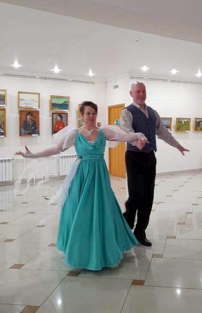 Солисты самодеятельного танцевального клуба «Палитра» Александр Лисовский и Елена Космакова грациозно вальсировали под музыку, написанную отцом и сыном Штраусами (вальсы «Поцелуй», «Сказки Венского леса»).