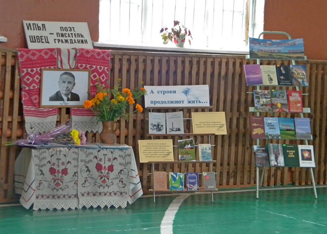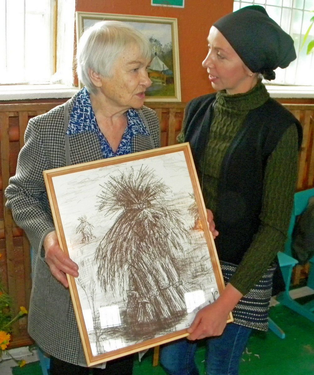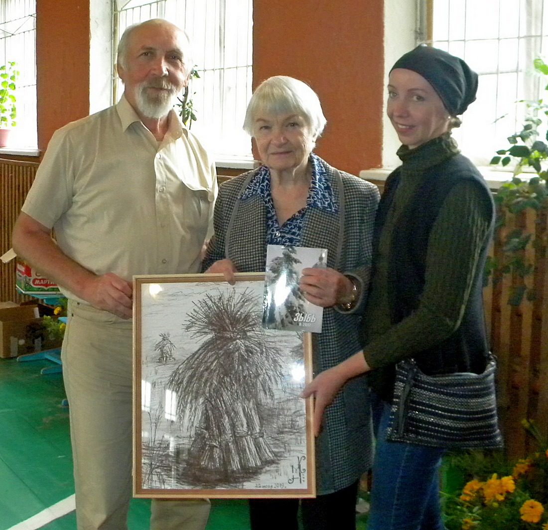 Впервые на празднике была представлена выставка художественных работ, запечатлевших родные места поэта, новозыбковской художницы Марии Кравченко, которая является иллюстратором книг: «Беглецы»., «Стихи и поэмы», изданных к 100-летию поэта, а также альманаха «Белый Колодец» (2019г.) Одна из работ была подарена вдове поэта Марии Николаевне. Затем гости посетили сельскую библиотеку и музей Ильи Андреевича Швеца. Теплые слова благодарности о состоявшемся празднике написали присутствующие в книге отзывов. |