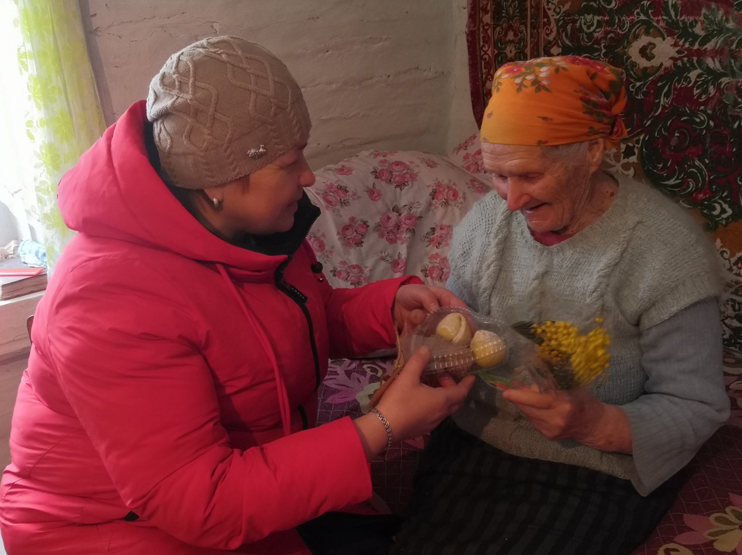 А 8 марта, в прекрасный женский день, работники Сновского СДК посетили женщин деревни Дубровка на дому. Первыми поздравления принимали две дамы, занимающиеся скандинавской ходьбой, которых встретили работники в нескольких километрах от деревни. После, с поздравлениями, цветами и сладким подарком, работники поехали в гости к самой старейшей жительнице деревни Дубровка, Клёва Пелагее Михайловне.  Она, несмотря на возраст  – 95 лет – была очень рада такому визиту,  поблагодарила за подарки, тёплые слова, а также за то, что её не забывают никогда. Работники Сновского СДК постарались не оставить без внимания никого и стремились поздравить каждую женщину Дубровки с Международным женским днем, открытками и тёплыми словами.