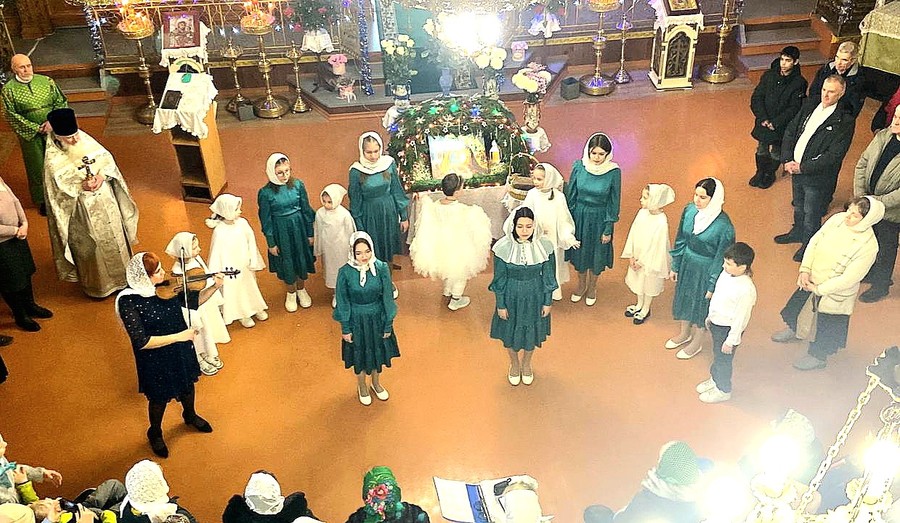Сегодня, 7 января, после праздничной Божественной Литургии, в Храме во имя Святой Троицы выступили педагоги и воспитанники Воскресной школы. Для прихожан храма ребята подготовили песнопения и стихи о Рождестве и Богомладенце. Праздничный Рождественский концерт учащихся Воскресной школы, вокального ансамбля СмоРодина (коллектив ДМШ им. И.Д. Кобзона) и выступление преподавателя воскресной школы Н.В. Бородиной со скрипичной композицией подарило всем собравшимся атмосферу праздника и незабываемые впечатления, напомнив о главных ценностях – любви, добре и мире, которые несет Рождество Христово. Автор идеи и постановки Рождественской программы - регент Елена Вячеславовна Мельникова. Было очень красиво и трогательно. По окончании праздничного концерта настоятель храма, протоиерей Николай Шестопалов, поздравил всех прихожан с праздником, поблагодарил ребят и их педагогов за замечательное выступление, после чего вручил всем детям сладкие подарки.