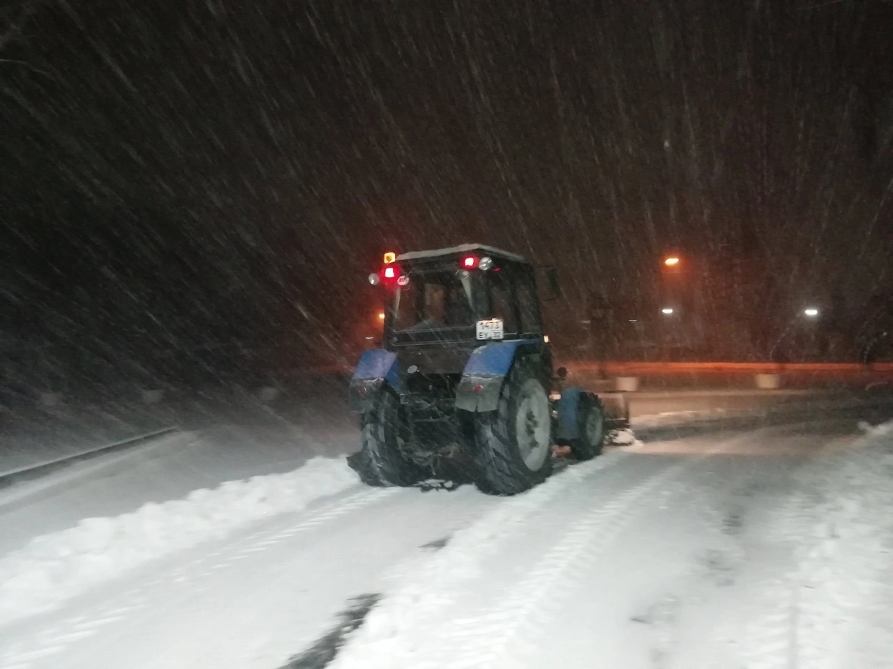Сейчас в уборке задействовано 8 КДМ, 2 поливомойки, 8 тракторов МТЗ с отвалом и 2 грейдера. В первую очередь уделяется внимание очистке центральных улиц и дорог, а также путей следования рейсовых и школьных автобусов. Ведется расчистка снега вручную на подходах к пешеходным переходам и остановочным комплексам.