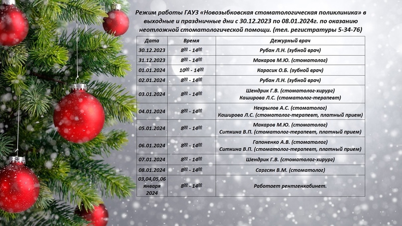 РАБОТА СТОМАТПОЛИКЛИНИКИ НА ПРАЗДНИКАХ