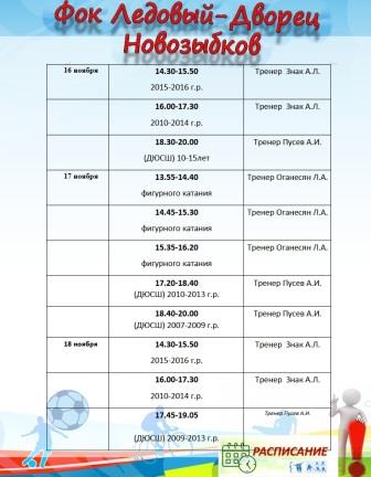 РАСПИСАНИЕ ТРЕНИРОВОК В ЛЕДОВОМ ДВОРЦЕ