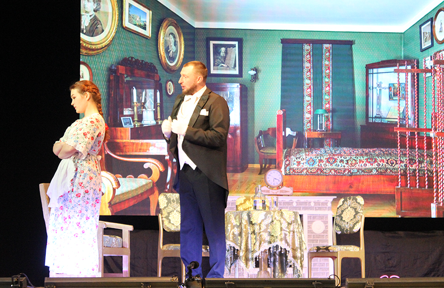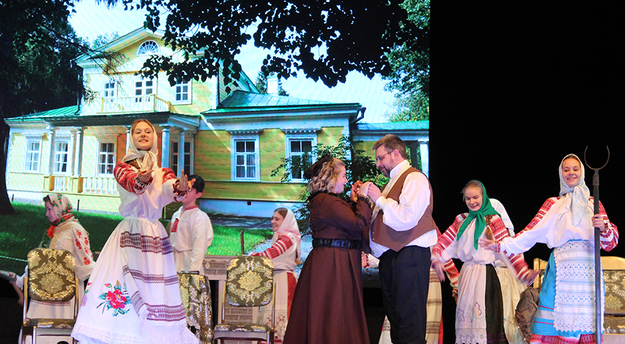 Уже с первых слов героев зрители в зале безоговорочно верят, что они находятся в помещичьей России, и это интересно, ново по ощущениям, свежо. Танцующий и веселящийся народ (ансамбль танца «Светлячок», хореограф Ольга Белас) взрывает переполненный зрительный зал энергией, страстью и искренней радостью юных танцоров.