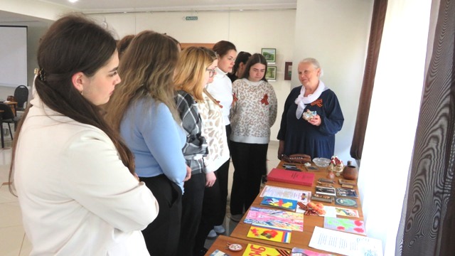 7 мая выставку «Свидетели войны и Великой Победы» посетили волонтеры из Новозыбковского педагогического колледжа. Студенты прослушали рассказ библиотекаря Афониной Н.М. о том, как задумывалась и оформлялась выставка, большую часть которой составляют картины, книги и личные вещи Е.П.Мосягина, подаренные его сыном библиотеке. Девушки посмотрели картины и рисунки наших земляков, участников Великой Отечественной войны, П.А.Чернышевского и Е.П.Мосягина, прослушали отрывки из документальной повести Мосягина «Осень сорок третьего года» и несколько стихотворений Евгения Потаповича. Особое внимание молодёжи привлекли чертежные инструменты инженера-проектировщика Мосягина, который 30 лет проработал в Аэропроекте. При его непосредственном участии и под его руководством разработаны проекты многих аэропортов: Внуково, Шереметьево, Домодедово, Кабула, Улан-Батора, Гаваны… Несколько сувениров, привезенных Евгением Потаповичем из Таллина, Афин и даже Кирилло-Белозерского монастыря, мобильники и диктофон из 90-х, бережно сохраненные детские поделки, подаренные ему школьниками при встречах на праздниках, куда Мосягина приглашали как участника Великой Отечественной войны – всё это помогло студентам представить широту души, разносторонность и многоплановость интересов нашего талантливого земляка. В ходе экскурсии Наталья Михайловна посоветовала студентам найти в интернете работы П.А.Чернышевского, чтобы шире познакомиться с творческим наследием этого Учителя целой плеяды новозыбковских художников. |