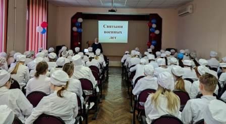 8 ноября для студентов первого курса медицинского колледжа библиотекарь Центральной библиотеки имени князя Н.Д.Долгорукова Афонина Н.М. прочитала лекцию с презентацией «Святыни военных лет», посвященную памятным событиям в жизни русского государства последних семи столетий. Наталья Михайловна рассказала о временах золотоордынского нашествия, о запечатленных в летописях, храмах, иконах, подвигах защитников Отечества: князе Василии Ростовском, князе Дмитрии Донском, монахах-воинах Александре Пересвете и Андрее Ослябе, о роли Донской и Владимирской икон в судьбе русского государства, о героически сражающихся в разное время монастырях: Псково-Печерском, Почаевском, Троице-Сергиевом."". Особое внимание библиотекарь уделила Смутному времени, которое грозило порабощением Руси поляками. Она подробно рассказала о роли Патриарха Гермогена в победе второго ополчения, о памятниках гражданину Минину и князю Пожарскому, царю Михаилу Романову и сельскому старосте Ивану Сусанину. О храмах, построенных в разное время в честь побед русского оружия при Иоанне Грозном, Петре I, Александре I и последующих императорах российских, библиотекарь рассказывала с демонстрацией соответствующих слайдов. Фрагмент фильма об адмирале Федоре Ушакове, причисленном Русской Церковью к лику святых, удивительно совпал по настроению с событиями сегодняшнего времени.