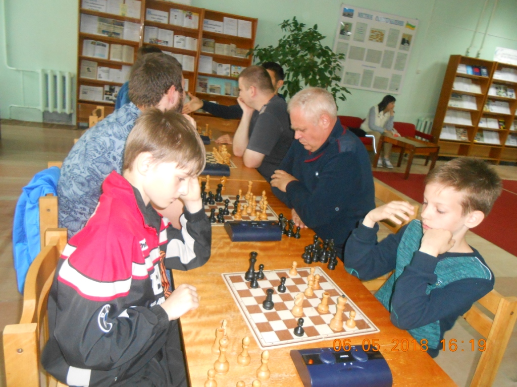 6 мая в читальном зале Центральной библиотеки прошёл турнир по «быстрым» шахматам, посвященный Дню Победы, в котором приняли участие 24 шахматиста:8 участников - из Старого Кривца, 1 - из Злынки, 15 участников -из Новозыбкова.