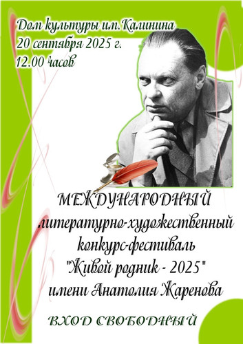 20 сентября в ДК имени М.И. Калинина состоится литературный конкурс-фестиваль "Живой родник". Начало в 12.00.