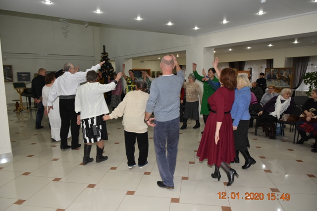 Юлия Афонина с успехом дебютировала в роли молодой, озорной бабы Яги, Татьяна Одинцова выступила в качестве Снегурочки, а Николай Коханов – Деда Мороза. Несмотря на почтенный возраст, гости веселились от души. Их радовали: шуточками – баба Яга, песнями 70-х – Елена Сытникова, красивыми, элегантными движениями – коллектив ансамбля бального танца. Но более всего их порадовала возможность потанцевать самим, которая за полтора часа представлялась гостям несколько раз.