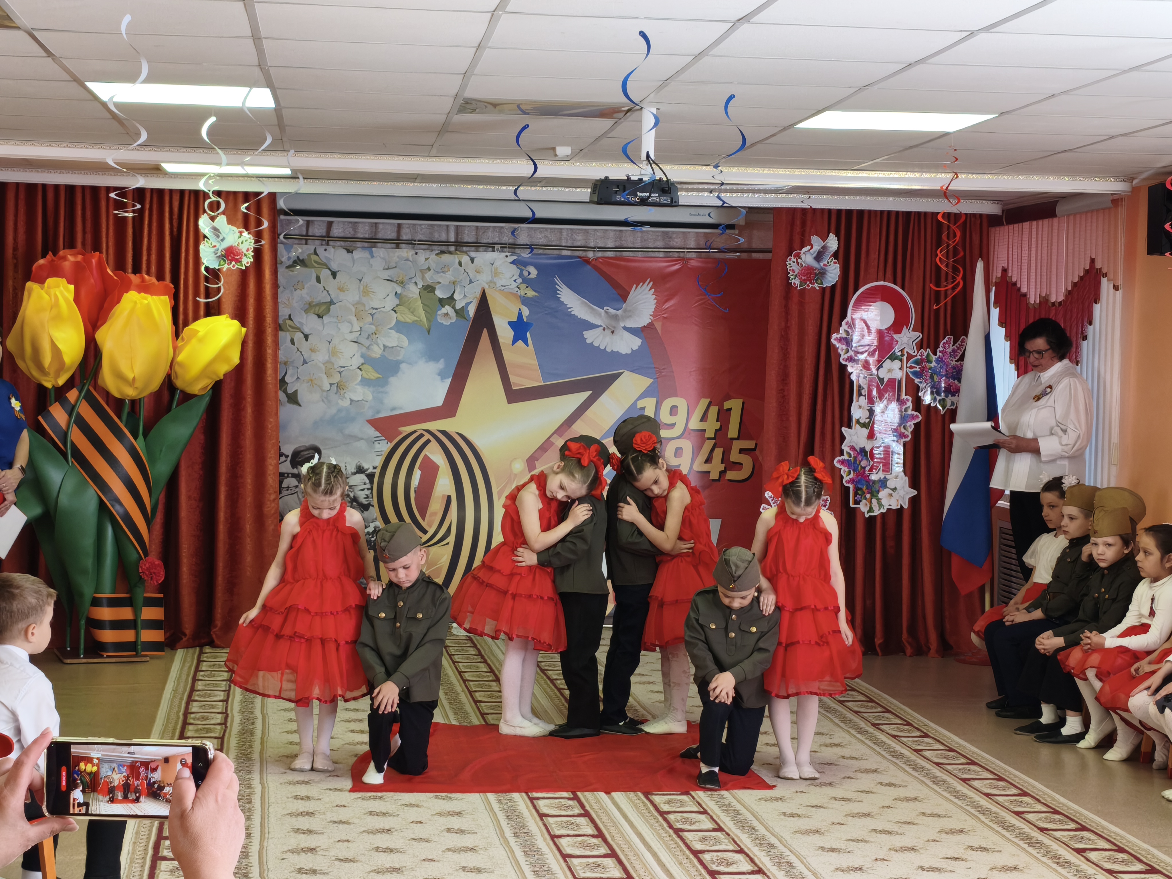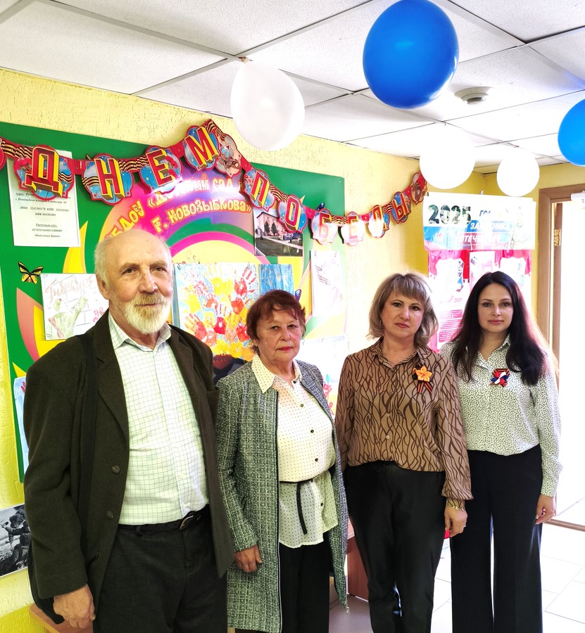 Есть в нашей жизни события, которые переполняют душу радостью, безмерной гордостью и счастьем за всех людей, за свою страну. Главное из них – это День Победы. День освобождения нашего великого народа от немецко-фашистских войск в 1945 году. 9 Мая – это праздник Победы, праздник мира, праздник памяти, он не мог пройти незамеченным для воспитанников сада № 1. В преддверии этого дня в первом детском саду прошло торжественное мероприятие с приглашением почетных гостей в лице семьи Поповых: Нели Михайловны и Константина Федоровича. Событие было подготовлено с целью формирования у детей знаний о Великой Отечественной войне, обогащения знаний дошкольников об истории своей страны, воспитания чувства гордости за героизм нашего народа. "".