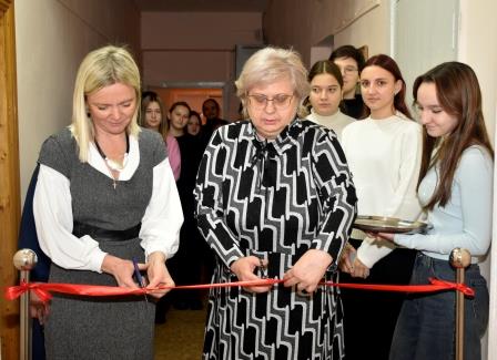 При открытии комнаты присутствовали студенты медицинского колледжа и коллектив библиотеки. Право перерезать ленточку для открытия комнаты было предоставлено директору библиотеки В.Ф. Филимоновой и директору АНО «Визард» И. А. Струменской. Первую экскурсию в открывшейся комнате провела библиотекарь Афонина Н.М.. |