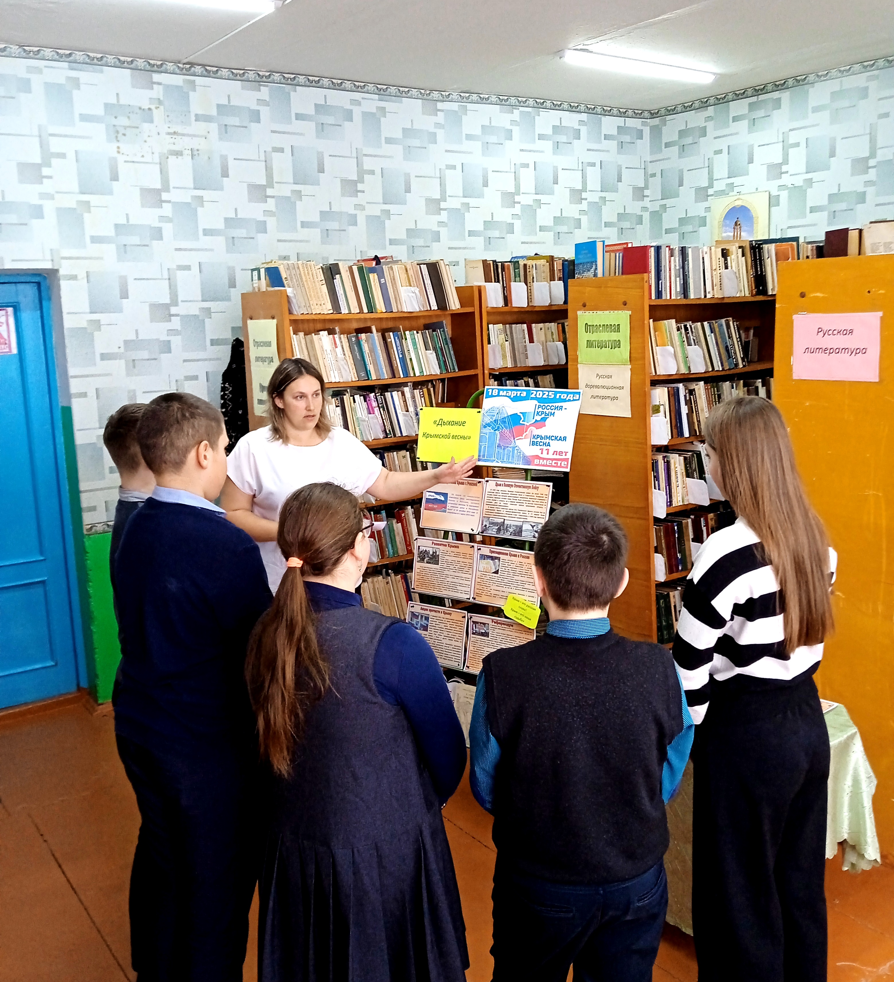 18 марта в Новоместской сельской библиотеке прошёл исторический час "Крым и Россия в сердце моём". Школьники узнали об истории Крыма, об историческом референдуме 2014 года, определившим судьбу полуострова. Поговорили о писателях, поэтах, которых вдохновил Крым на создание произведений, среди них - А. С. Пушкин, А. П. Чехов, Л. Н. Толстой. |