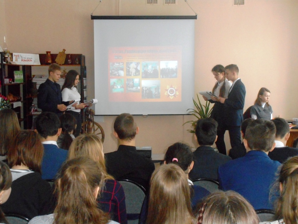 В Детской библиотеке состоялась защита социального проекта «Подвиг солдата войны». Учащиеся 8 «А» класса СОШ №9 под руководством классного руководителя Яцковой М.В провели историко-исследовательскую работу по сбору материалов о Героях Советского Союза - участниках Великой Отечественной войны, уроженцах Брянской области. Ребята изучили краеведческие материалы фонда Детской библиотеки, музейные источники, ресурсы Интернета. В итоге их исследовательской работы была составлена рукописная книга «Подвиг солдата войны», которая была подарена Детской библиотеке.