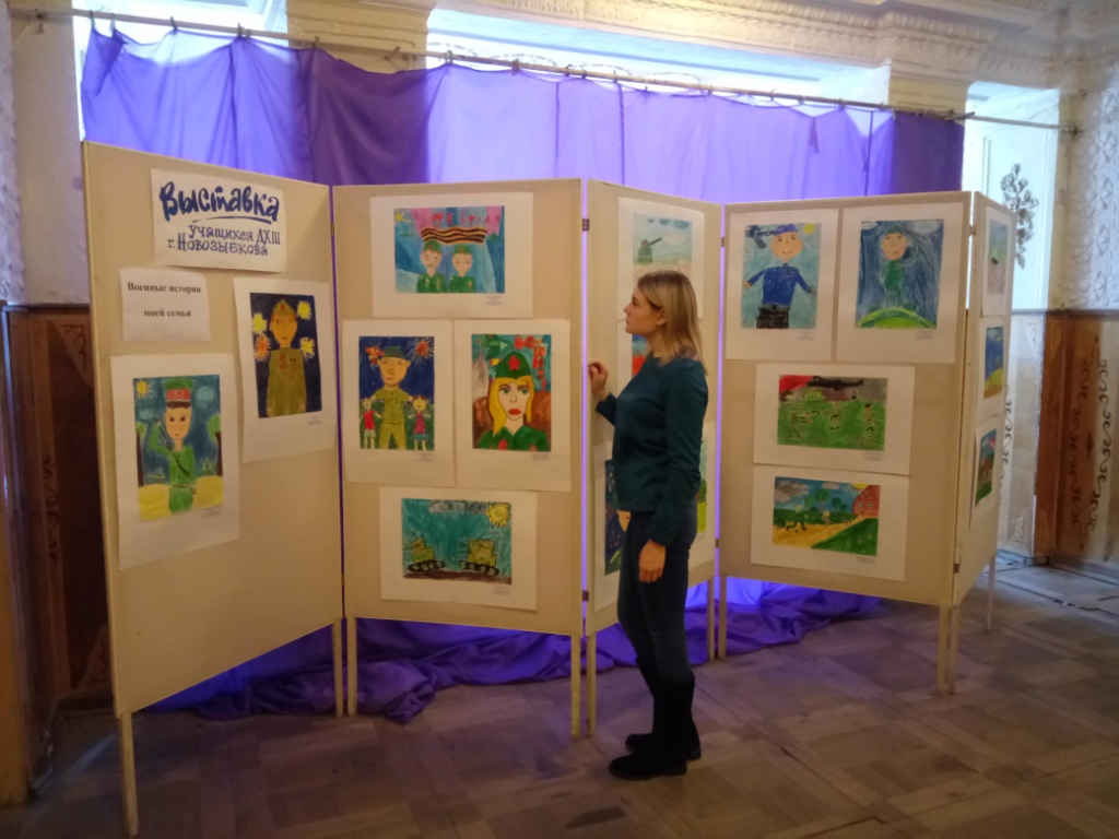 В Детской художественной школе была подготовлена мобильная выставка детского творчества «Военные истории моей семьи», где юные художники города Новозыбкова отобразили отцов, дедов и прадедов защищавших свою Родину. Данная выставка разместилась в фойе ДК им. Калинина.