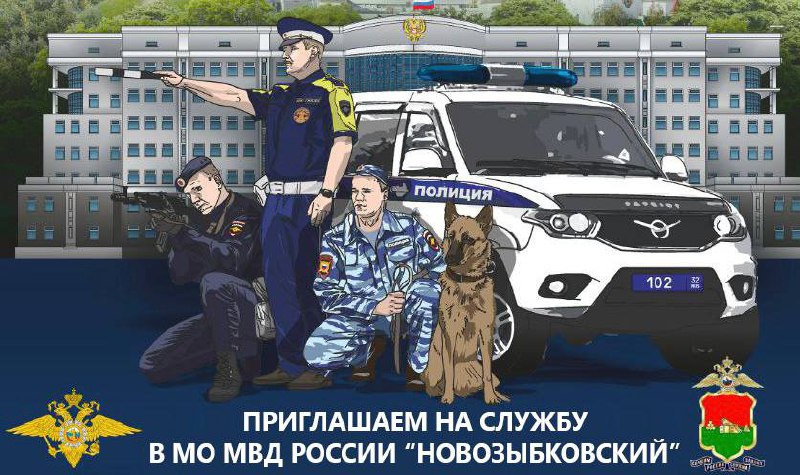 МО МВД России «Новозыбковский» приглашает на службу физически здоровых молодых людей в возрасте не моложе 18 лет до 50 лет на должности полицейского (водителя, кинолога) патрульно-постовой службы полиции, полицейского (водителя) группы по обеспечению мер безопасности и антитеррористической защищенности, полицейского (водителя, кинолога) отделения охраны и конвоирования подозреваемых и обвиняемых, младшего инспектора службы группы режима специального приемника для содержания лиц, подвергнутых административному аресту, помощника оперативного дежурного дежурной части – имеющих среднее общее образование. Заработная плата от 31000 рублей, а при условии добросовестного несения службы и положительных результатов работы до 50 000.