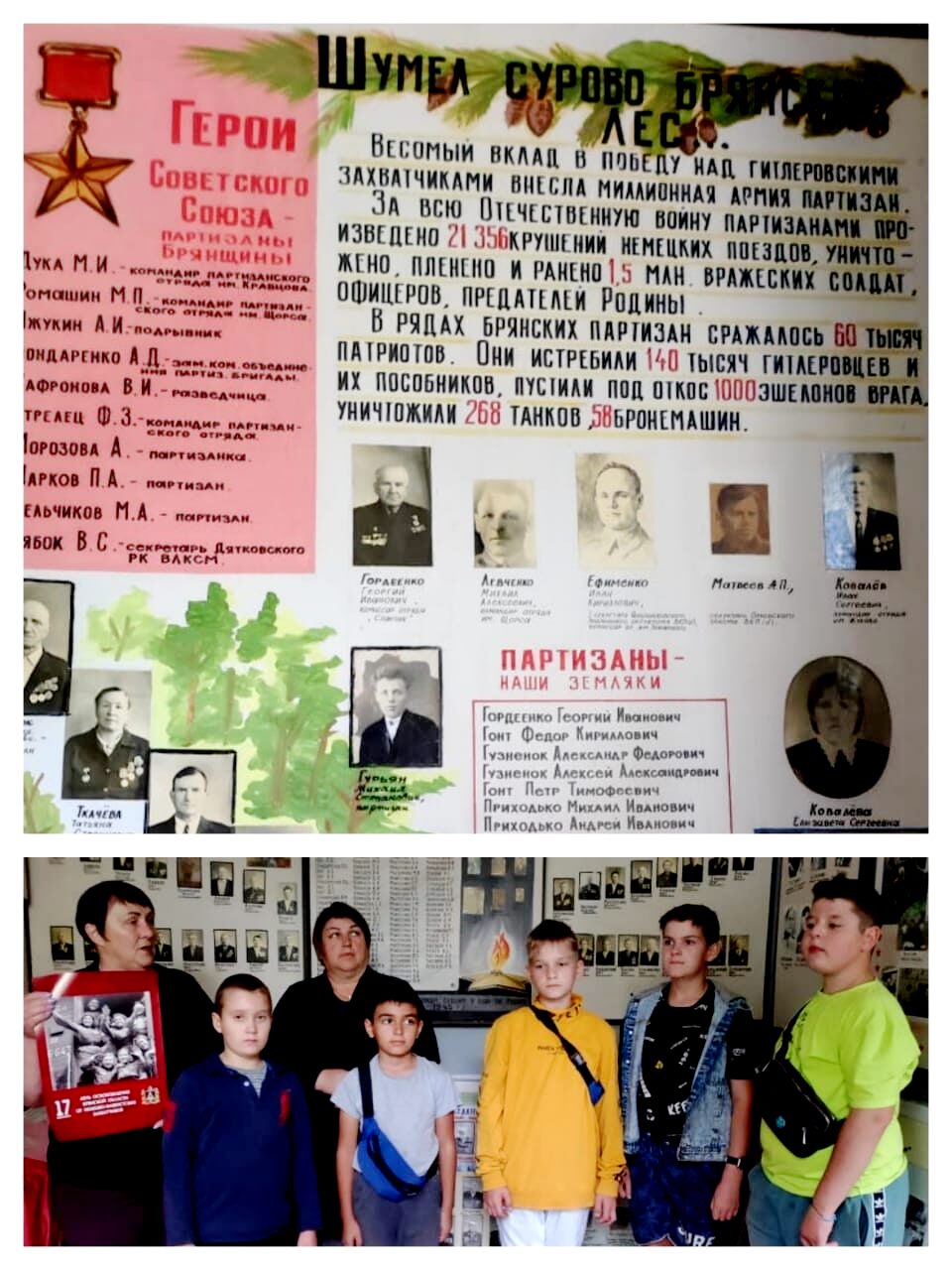 Вечером для детей и молодёжи провели патриотический час «Звон памяти», где рассказали молодёжи, как в годы Великой Отечественной войны жители Брянщины вели жестокую борьбу с нацистами и предателями. Оккупация стала тяжелейшим испытанием для мирных жителей. И сегодня мы обязаны с глубокой признательностью вспоминать подвиг наших соотечественников, которые самоотверженно сражались на фронтах, в подполье, в партизанских отрядах, освобождали родные деревни и города, возрождали их из руин, строили мирную жизнь.