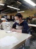 На входе у всех работниц измеряется температура. Установлены контейнеры с антисептиком для обработки рук. Сами мастерицы работают в масках, но без перчаток. Это и понятно - с закрытыми руками шить не получится. Рабочее расстояние нахождения швей друг от друга около 1,5 метров. «В трудовой дисциплине соблюдены все необходимые санитарно-эпидемиологические нормы, - отмечает Николай Иванцов. - Защитные маски шьются из спанбонда - нетканного материала, полученного из волокон или нитей без помощи ткацких станков. Это сырьё достаточно широко используется, благодаря его уникальным свойствами и качеству. Он экологически чистый, высокопрочный и износостойкий. Технология пошива маски простая - к прошитому в три слоя спанбонду крепится эластичная лента».