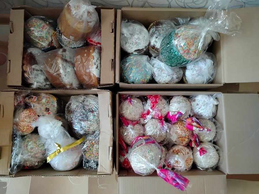 В преддверии Пасхи жители Новозыбковского округа собрали и отправили нашим защитникам куличи. Выпечку и крашеные яйца передали сотрудники организаций и предприятий округа, городской администрации, воспитанники детских садов и ученики школ. Груз, согретый теплом людских сердец, освятил настоятель Чудо-Михайловского храма отец Владимир.