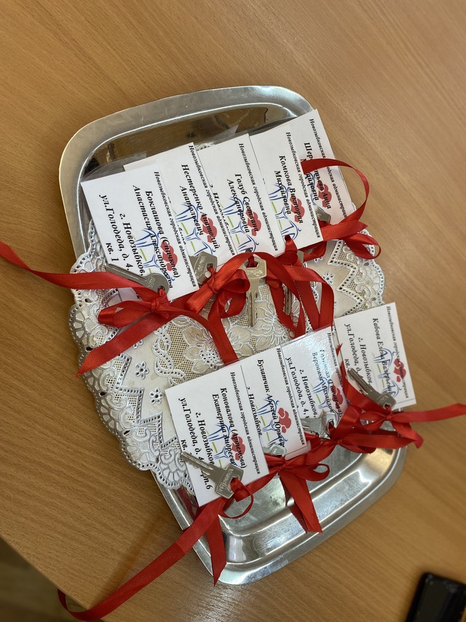 Сегодня в Новозыбковском городском округе очень приятное событие, созвучное предновогоднему настроению в ожидании чуда: в Брянске, в Хрустальном зале Правительства Брянской области, 26 сирот из Новозыбкова получили ключи от новеньких квартир. Эту праздничную эстафету продолжили в Новозыбкове: в кабинете главы Новозыбковской городской администрации были вручены ещё 9 ключей от квартир – лицам из числа детей-сирот и опекун недееспособной получила ключи за свою подопечную. Парни и девушки будут жить по соседству, в 7 корпусах новеньких квартир, построенных для них по ул. Голодеда, д. 4. Всего в нашем округе в этом году для сирот приобретена 41 квартира. ""