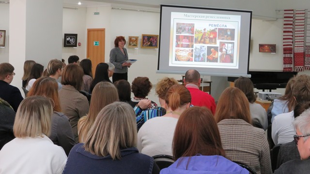 20 мая с 9.00 до 13.00 в зале искусств Центральной библиотеки имени князя Н.Д.Долгорукова проходила выставка с мастер-классами «Мастерская ремесленника». В рамках мероприятия студенты Новозыбковского филиала «Брянского государственного университета», а также гости и участники Международного научно-просветительского форума «Русские традиции бытовой лингвокультуры в славянском пограничье» познакомились с выставочными традициями Зала искусств, традиционными ремёслами Брянского края, в том числе города Новозыбкова XVIII-XIX веков."". Мероприятие украсили музыкальные композиции в исполнении солистов студии «Шарм» под руководством Ульяны Роабеш, Галины Соболевой и Татьяны Гоголевой. Зрители услышали интересный рассказ Алексея Беласа, представившего личную коллекцию рушников и крестьянского костюма XIX-начала XX века, собранную в многочисленных экспедициях по Новозыбковскому и Красногорскому районам. Желающие смогли поучиться ремеслу изготовления глиняной игрушки-свистульки, тряпичной куклы-оберега, поучаствовать в росписи керамической игрушки у мастеров XXI века: Александра Мысливченко, Валентины Шило, Натальи Червяковой, Анны Чирок, -перенявших и сохранивших традиции предков. |