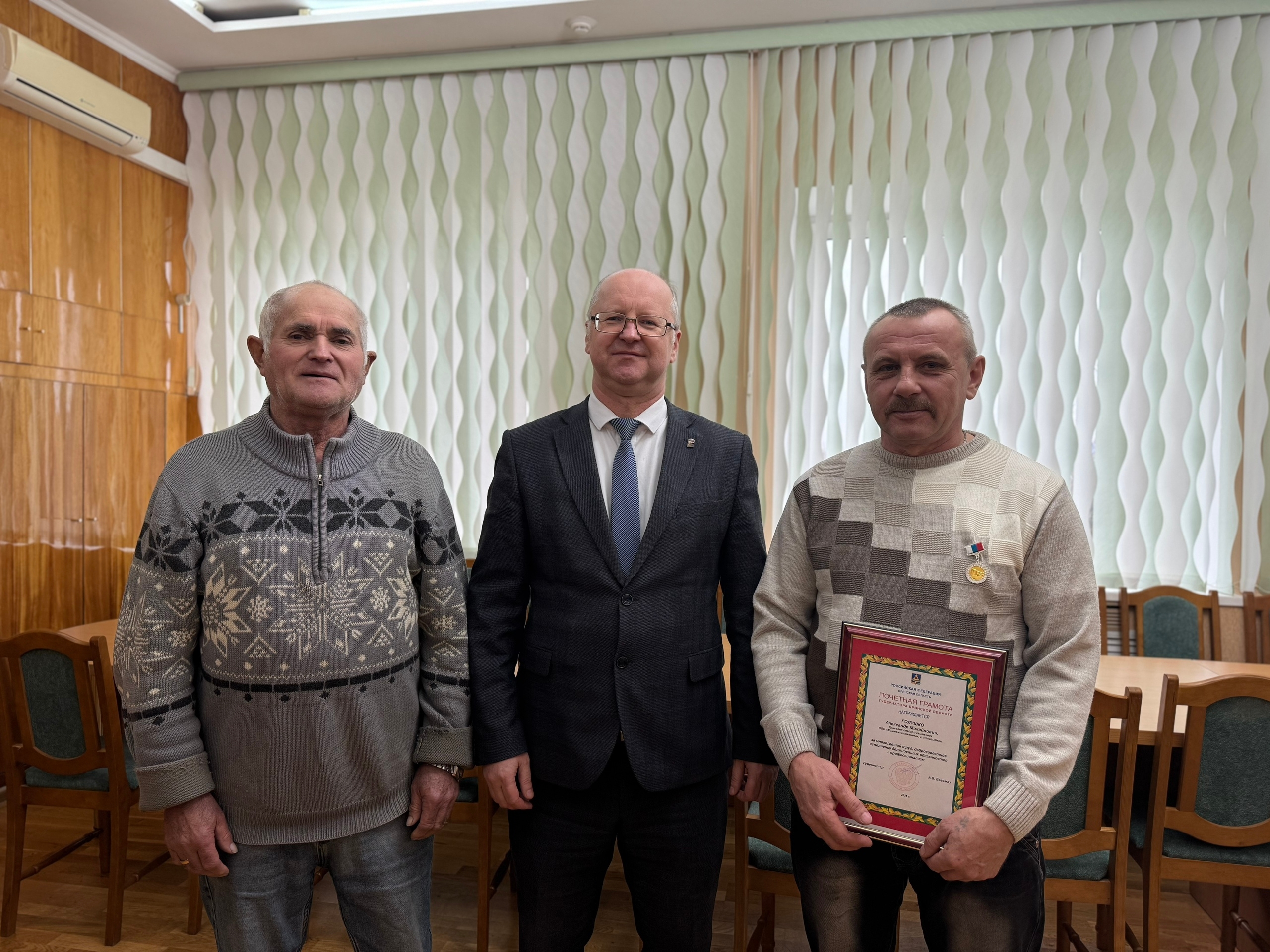 Глава Новозыбковской городской администрации Александр Викторович Юрлов наградил Почетной грамотой Губернатора Брянской области бригадира слесаря-сантехника ООО "Монтажсантехника" Галушко Александра Михайловича.